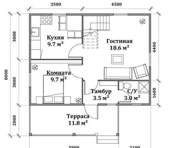 - Внешние размеры террасы 5,5х6